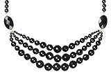 This triple strand black onyx beaded necklace puts a dramatic finish on a special outfit. Three rows of round black onyx beads, graduated in size and faceted for a light sparkle, are joined part way up the chain by checker-cut onyx ovals. The necklace continues with a strand of smooth onyx round and fastens in back with a 14 karat yellow gold clasp. Versatile black lets you pair this elegant necklace with plenty of different ensembles.