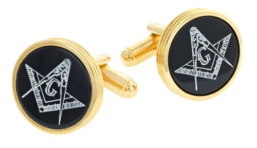 Concentric edged gold plated cufflinks with swivel bar. Onyx etched with Masonic symbol. Gift boxed. Beautifully crafted. Made in the U.S.A.