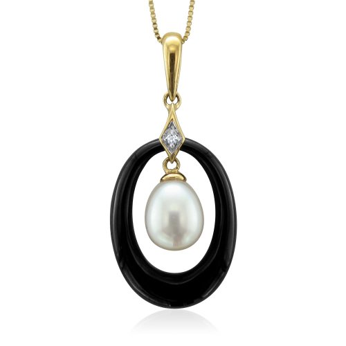 10k Yellow Gold Natural Diamond Onyx and Pearl Pendant - 5.70 cttw