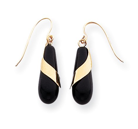 | 14k Gold & Onyx Drop Earrings (Shepherd hook, 14k Yellow gold, Onyx, Polished) ...Read more |